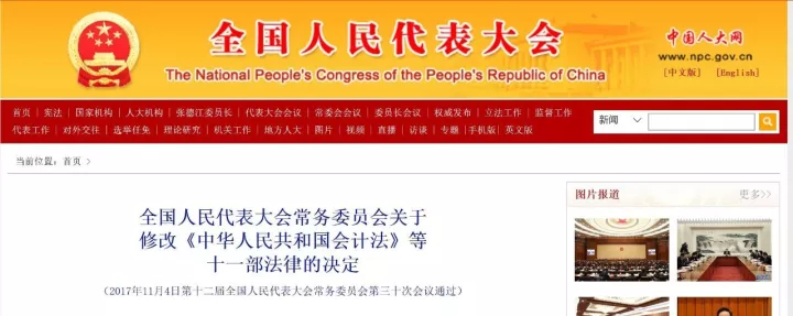 (2017年11月4日第十二届全国人民代表大会常务委员会第三十次会议通过)